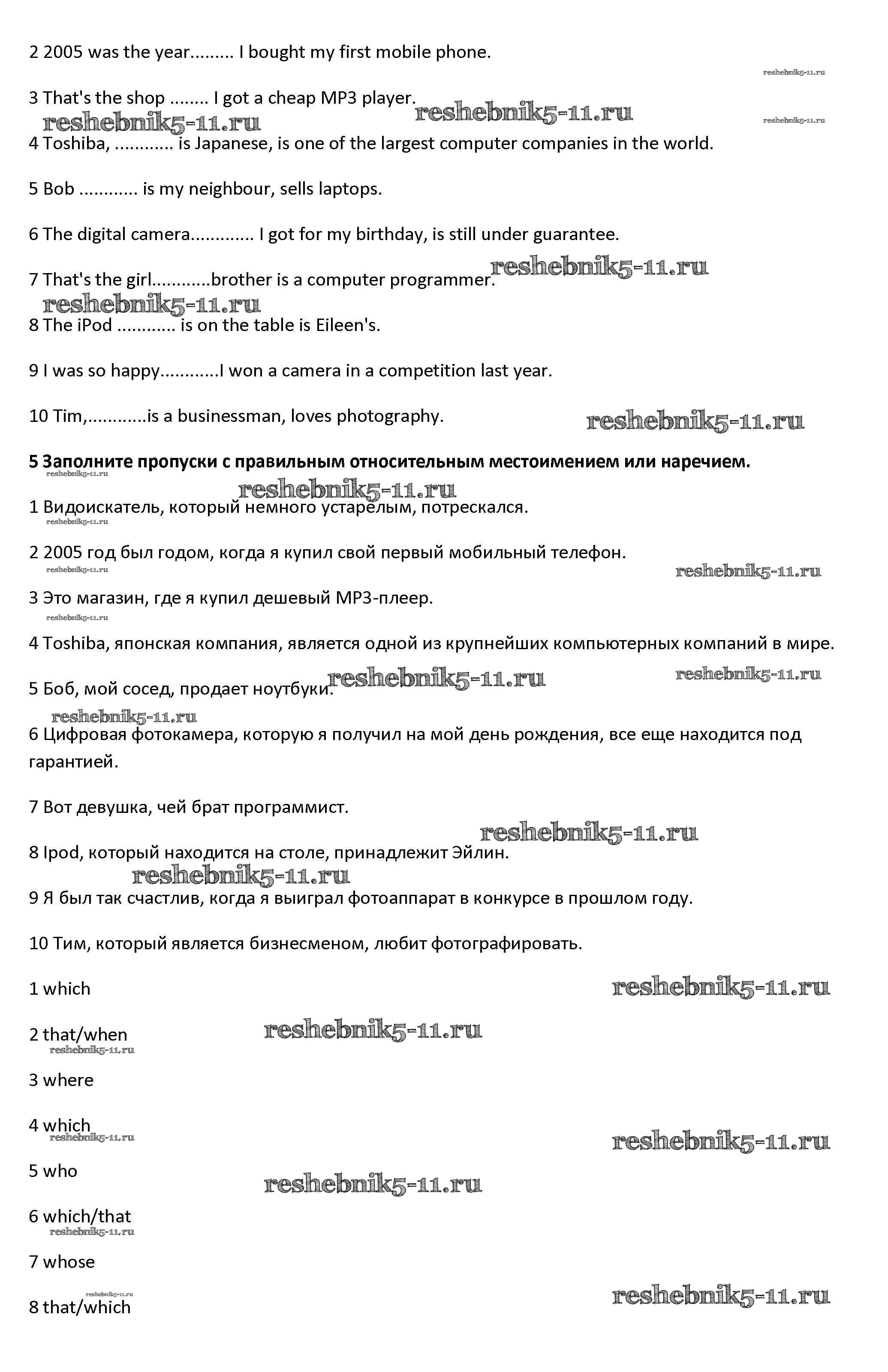Готовая домашняя работа с ответами по Английскому языку за 10 класс Афанасьева, Дули, Михеева, Оби, Эванс Рабочая тетрадь Spotlight Базовый уровень Просвещение 2015 ФГОС - Часть 8c 5