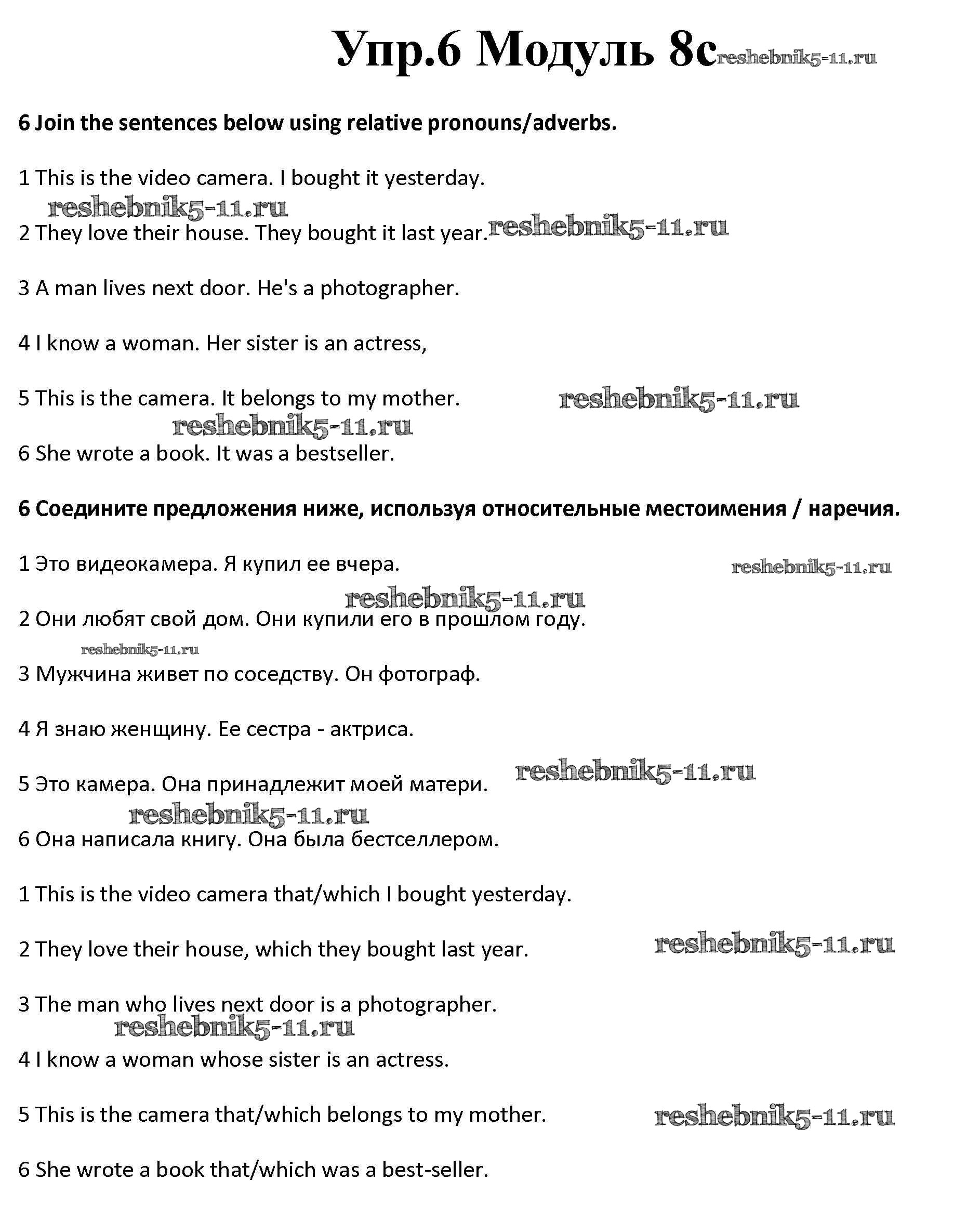 Готовая домашняя работа с ответами по Английскому языку за 10 класс Афанасьева, Дули, Михеева, Оби, Эванс Рабочая тетрадь Spotlight Базовый уровень Просвещение 2015 ФГОС - Часть 8c 6