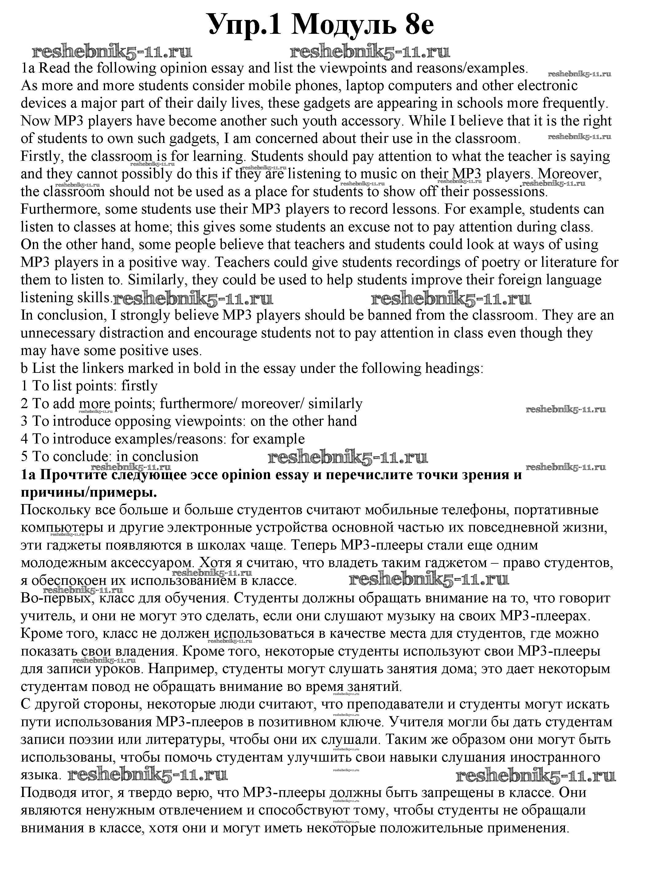 Готовая домашняя работа с ответами по Английскому языку за 10 класс Афанасьева, Дули, Михеева, Оби, Эванс Рабочая тетрадь Spotlight Базовый уровень Просвещение 2015 ФГОС - Часть 8e 1