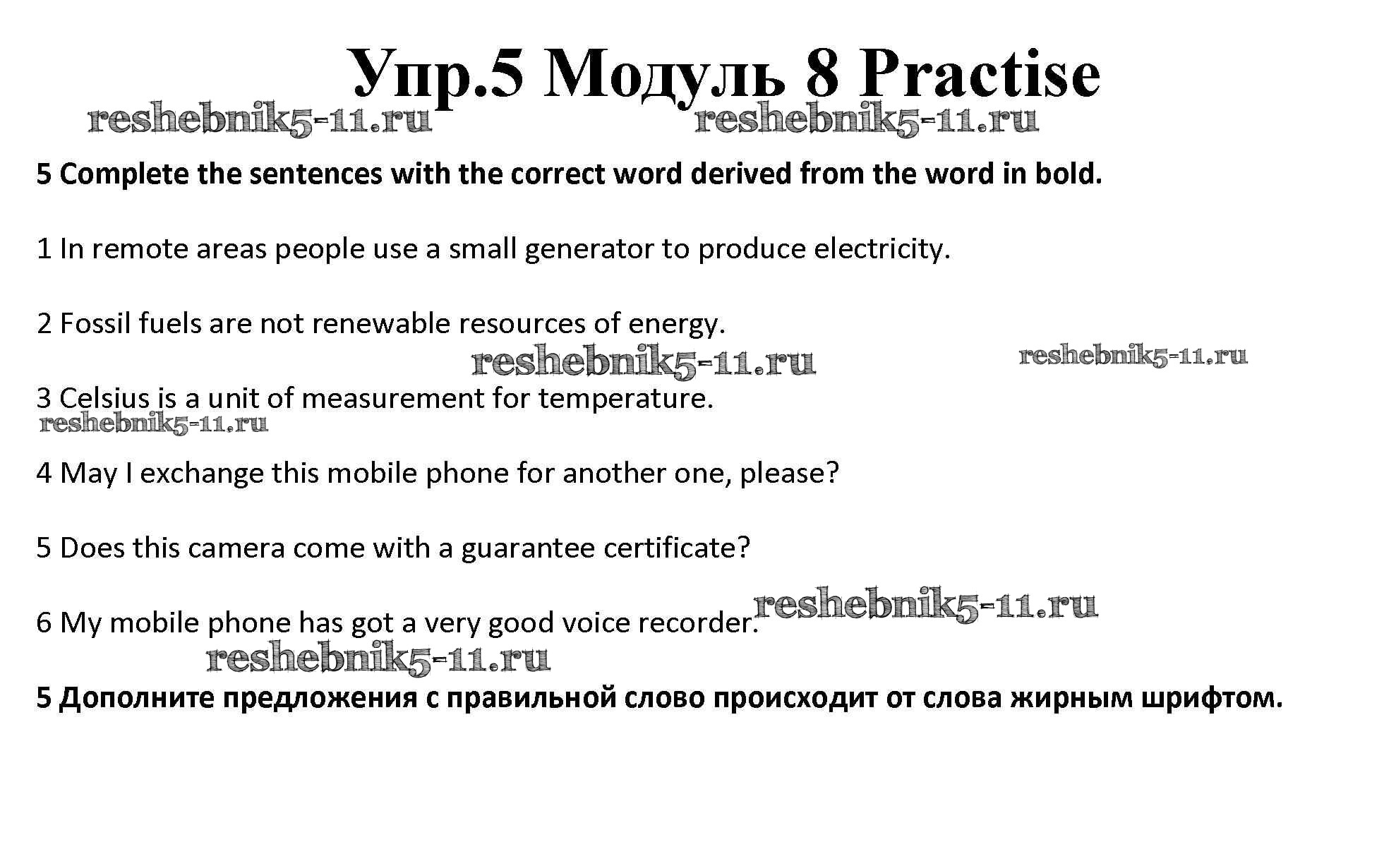 Готовая домашняя работа с ответами по Английскому языку за 10 класс Афанасьева, Дули, Михеева, Оби, Эванс Рабочая тетрадь Spotlight Базовый уровень Просвещение 2015 ФГОС - Vocabulary Practice 5