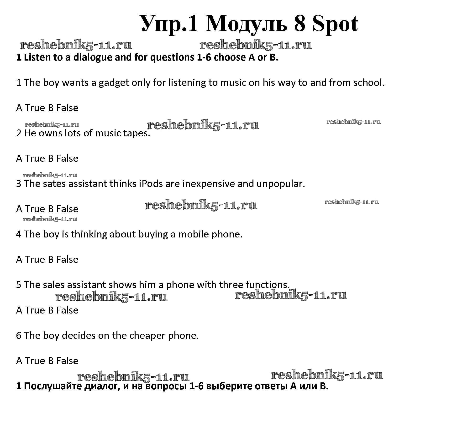 Готовая домашняя работа с ответами по Английскому языку за 10 класс Афанасьева, Дули, Михеева, Оби, Эванс Рабочая тетрадь Spotlight Базовый уровень Просвещение 2015 ФГОС - Spotlight on Exams 1