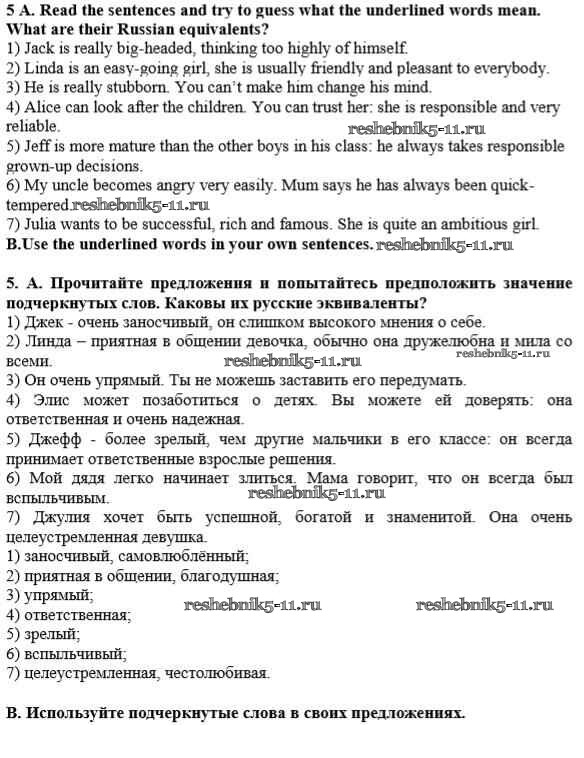 Готовая домашняя работа с ответами по Английскому языку за 10 класс Афанасьева, Михеева, Баранова Учебник Rainbow Базовый уровень Дрофа 2016 ФГОС - Step 1 5