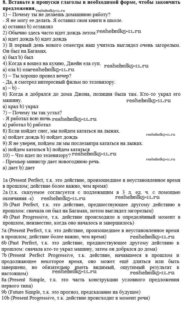 Готовая домашняя работа с ответами по Английскому языку за 10 класс Афанасьева, Михеева, Баранова Учебник Rainbow Базовый уровень Дрофа 2016 ФГОС - Step 11 8
