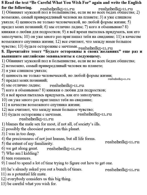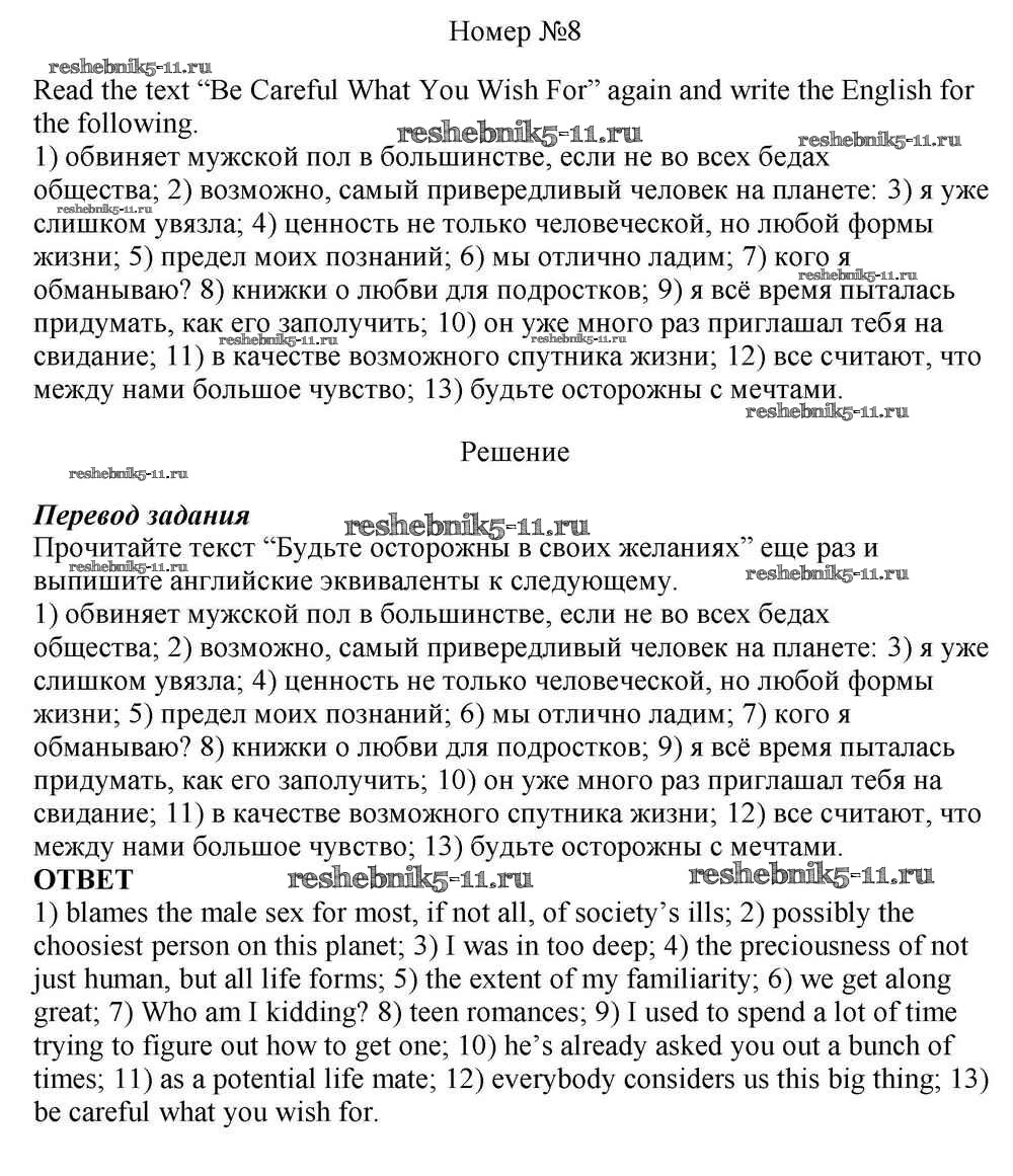 Готовая домашняя работа с ответами по Английскому языку за 10 класс Афанасьева, Михеева, Баранова Учебник Rainbow Базовый уровень Дрофа 2016 ФГОС - Step 3 8