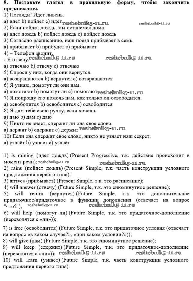Готовая домашняя работа с ответами по Английскому языку за 10 класс Афанасьева, Михеева, Баранова Учебник Rainbow Базовый уровень Дрофа 2016 ФГОС - Step 7 9