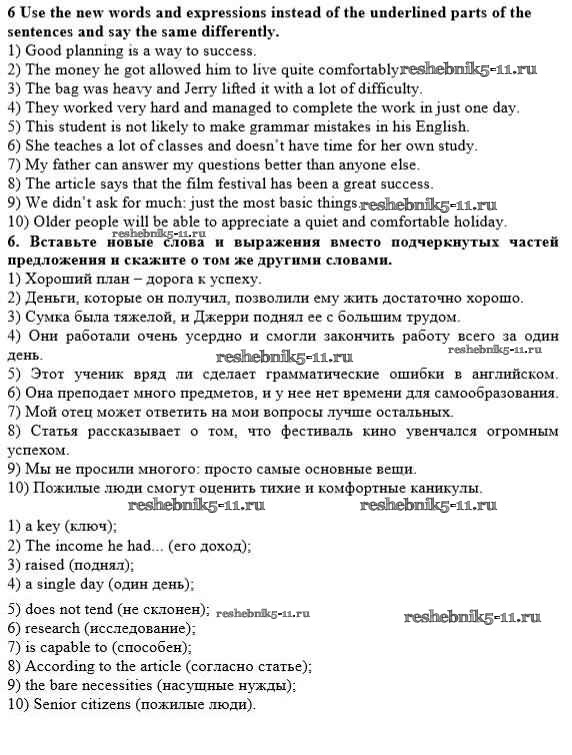 Готовая домашняя работа с ответами по Английскому языку за 10 класс Афанасьева, Михеева, Баранова Учебник Rainbow Базовый уровень Дрофа 2016 ФГОС - Step 8 6