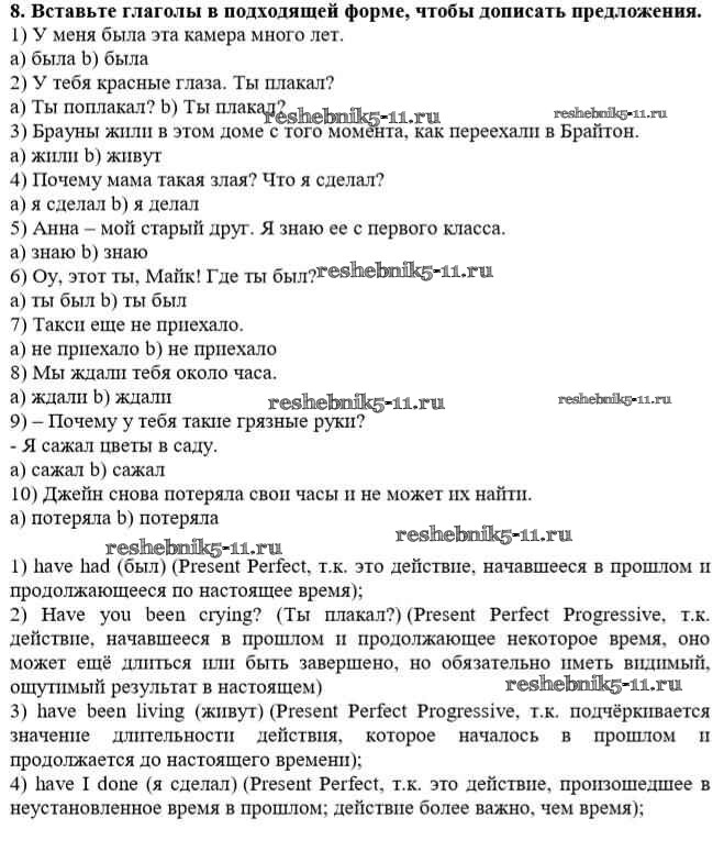 Готовая домашняя работа с ответами по Английскому языку за 10 класс Афанасьева, Михеева, Баранова Учебник Rainbow Базовый уровень Дрофа 2016 ФГОС - Step 9 8