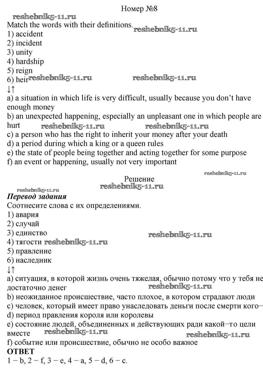Готовая домашняя работа с ответами по Английскому языку за 10 класс Афанасьева, Михеева, Баранова Учебник Rainbow Базовый уровень Дрофа 2016 ФГОС - Step 10 8