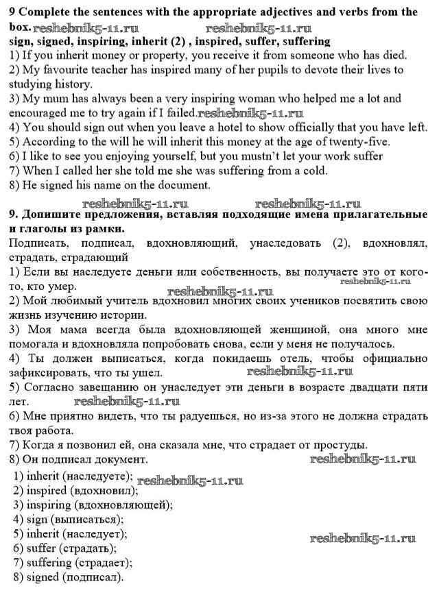 Готовая домашняя работа с ответами по Английскому языку за 10 класс Афанасьева, Михеева, Баранова Учебник Rainbow Базовый уровень Дрофа 2016 ФГОС - Step 10 9