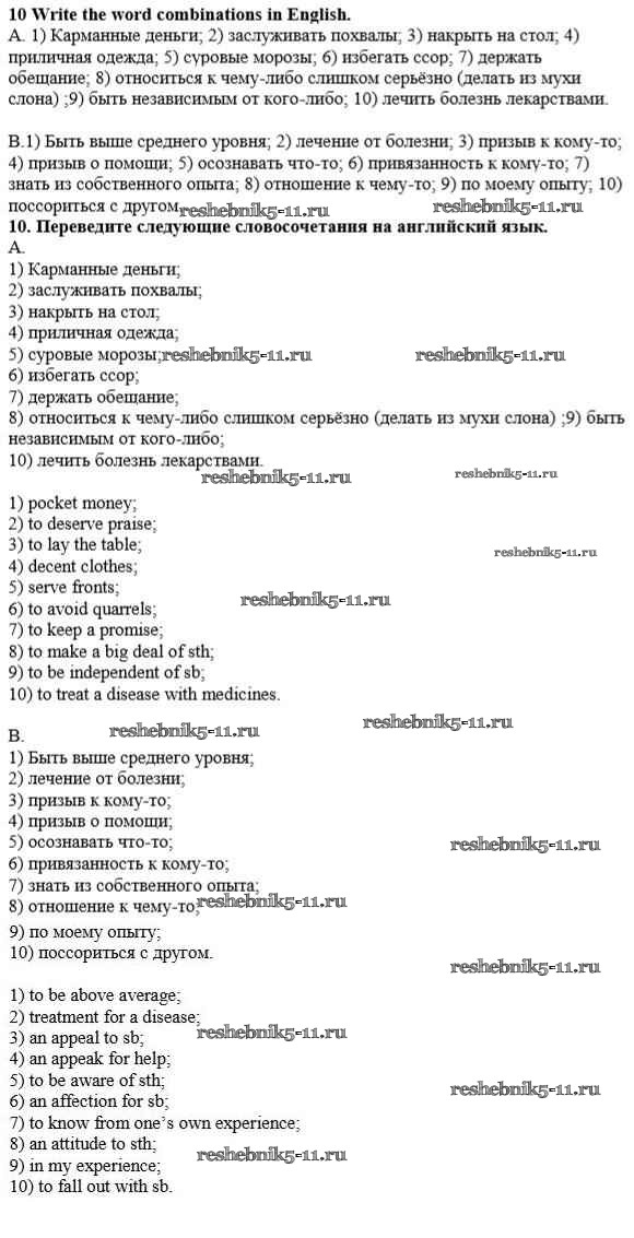 Готовая домашняя работа с ответами по Английскому языку за 10 класс Афанасьева, Михеева, Баранова Учебник Rainbow Базовый уровень Дрофа 2016 ФГОС - Step 11 10