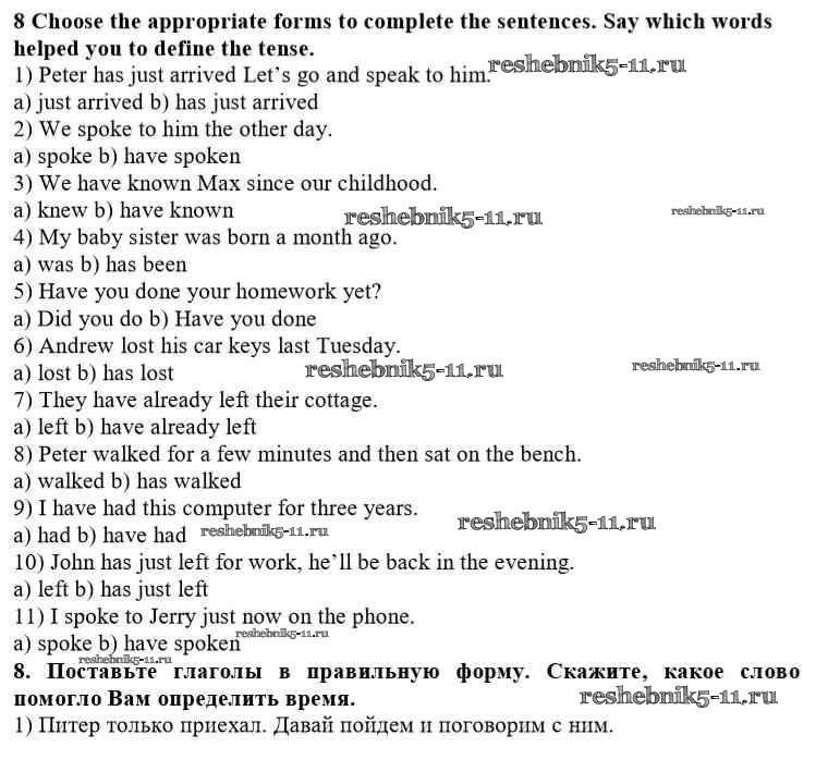 Готовая домашняя работа с ответами по Английскому языку за 10 класс Афанасьева, Михеева, Баранова Учебник Rainbow Базовый уровень Дрофа 2016 ФГОС - Step 2 8