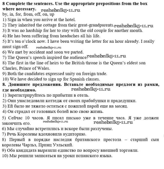 Готовая домашняя работа с ответами по Английскому языку за 10 класс Афанасьева, Михеева, Баранова Учебник Rainbow Базовый уровень Дрофа 2016 ФГОС - Step 9 8