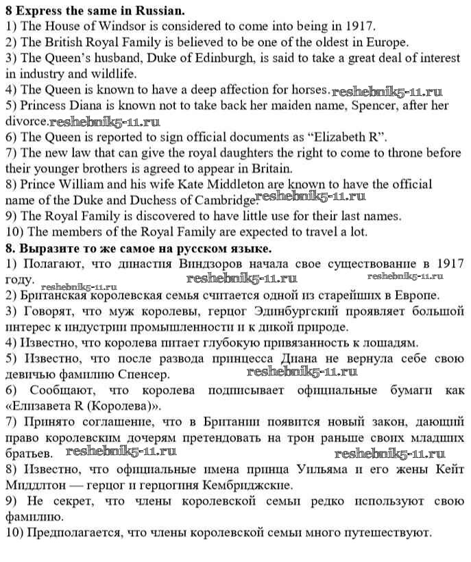 Готовая домашняя работа с ответами по Английскому языку за 10 класс Афанасьева, Михеева, Баранова Учебник Rainbow Базовый уровень Дрофа 2016 ФГОС - Step 1 8