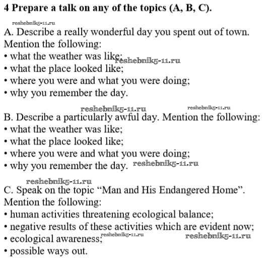 Готовая домашняя работа с ответами по Английскому языку за 10 класс Афанасьева, Михеева, Баранова Учебник Rainbow Базовый уровень Дрофа 2016 ФГОС - Step 11 4