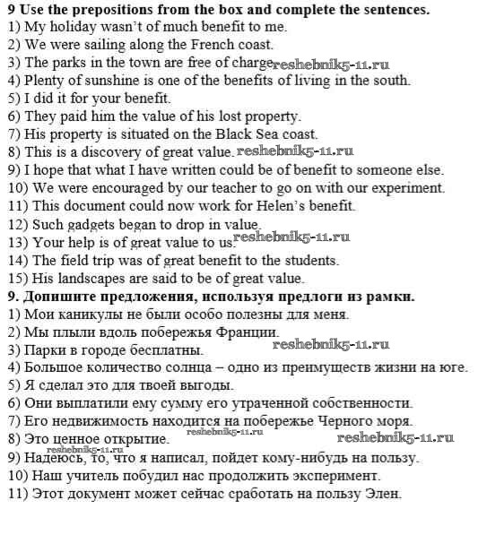 Готовая домашняя работа с ответами по Английскому языку за 10 класс Афанасьева, Михеева, Баранова Учебник Rainbow Базовый уровень Дрофа 2016 ФГОС - Step 5 9