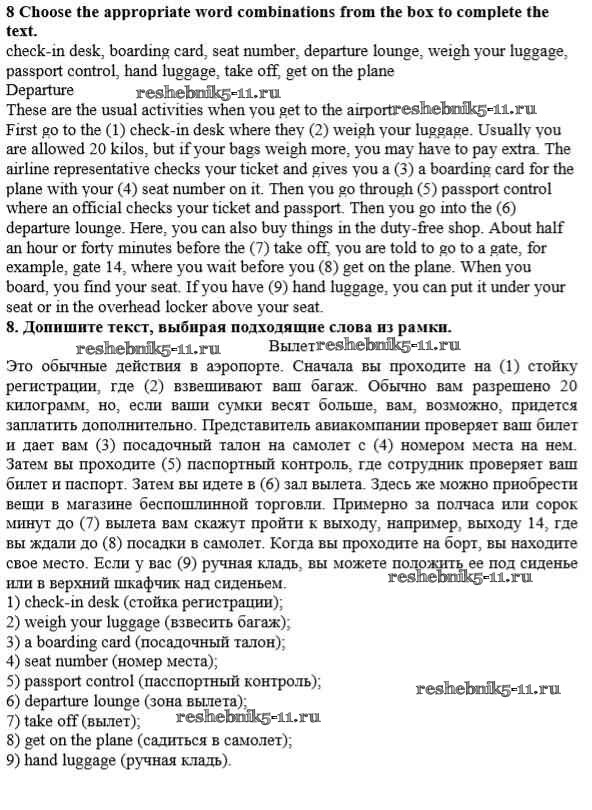 Готовая домашняя работа с ответами по Английскому языку за 10 класс Афанасьева, Михеева, Баранова Учебник Rainbow Базовый уровень Дрофа 2016 ФГОС - Step 5 8