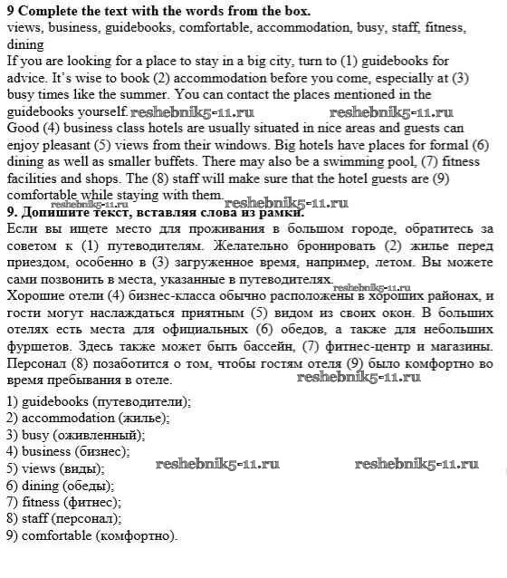 Готовая домашняя работа с ответами по Английскому языку за 10 класс Афанасьева, Михеева, Баранова Учебник Rainbow Базовый уровень Дрофа 2016 ФГОС - Step 6 9