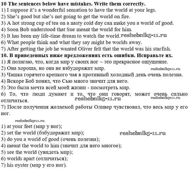 Готовая домашняя работа с ответами по Английскому языку за 10 класс Афанасьева, Михеева, Баранова Учебник Rainbow Базовый уровень Дрофа 2016 ФГОС - Step 9 10