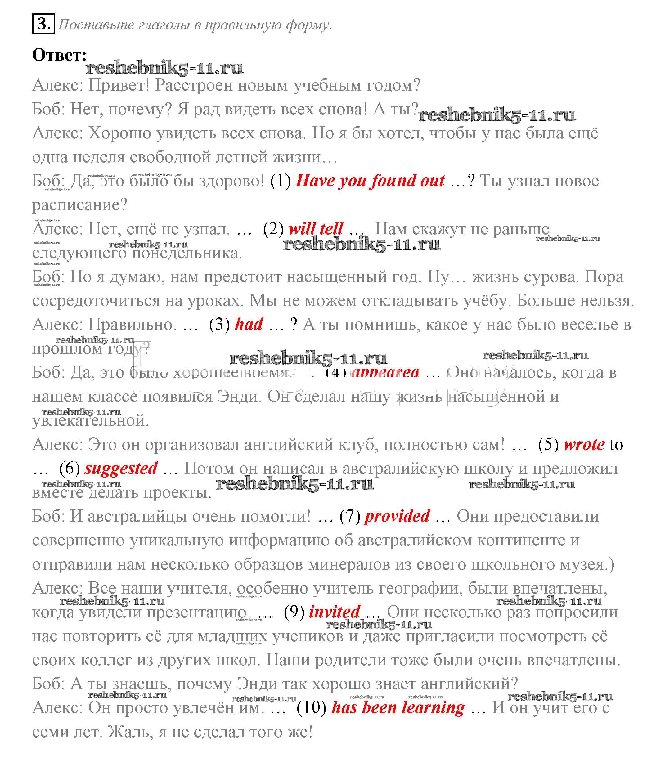 Готовая домашняя работа с ответами по Английскому языку за 10 класс Биболетова, Бабушис, Снежко Рабочая тетрадь Enjoy English Аст/Астрель 2016 ФГОС - Section 1 3