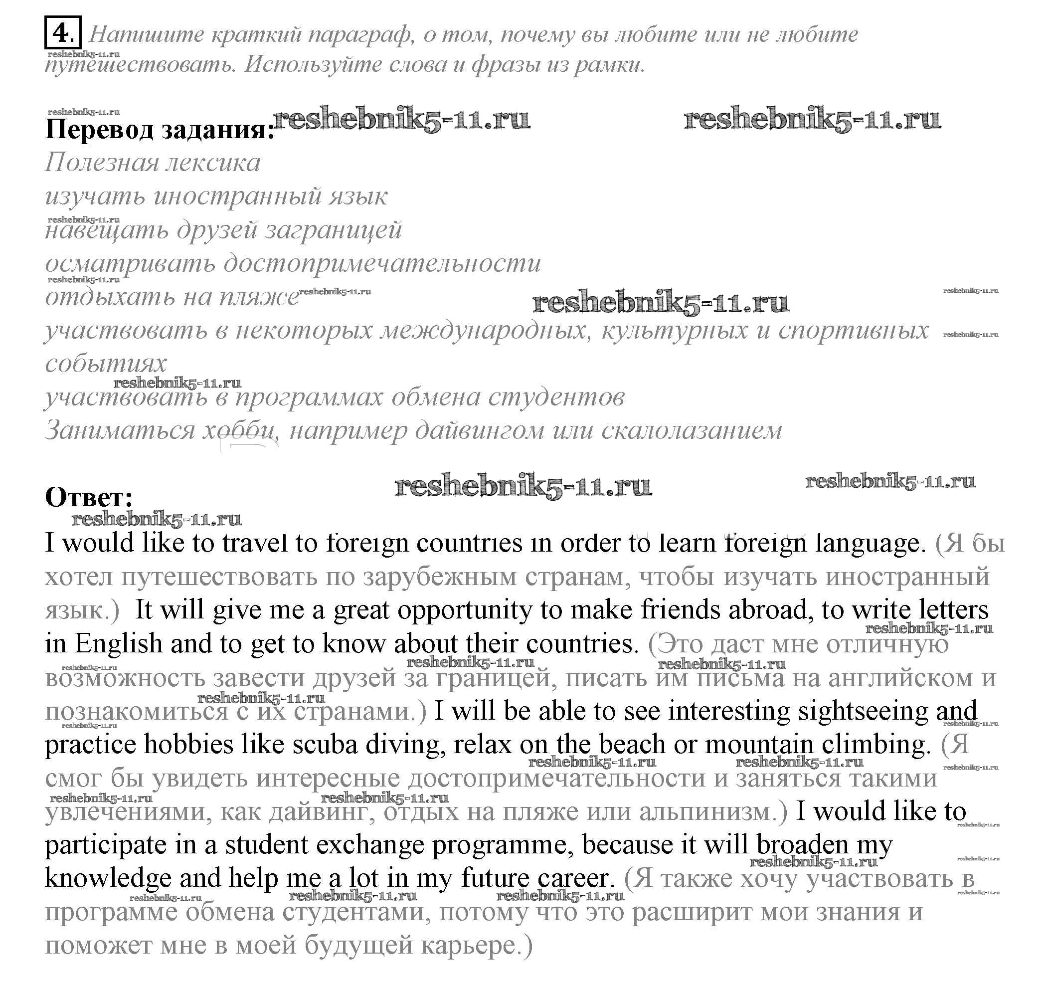Готовая домашняя работа с ответами по Английскому языку за 10 класс Биболетова, Бабушис, Снежко Рабочая тетрадь Enjoy English Аст/Астрель 2016 ФГОС - Section 1 4