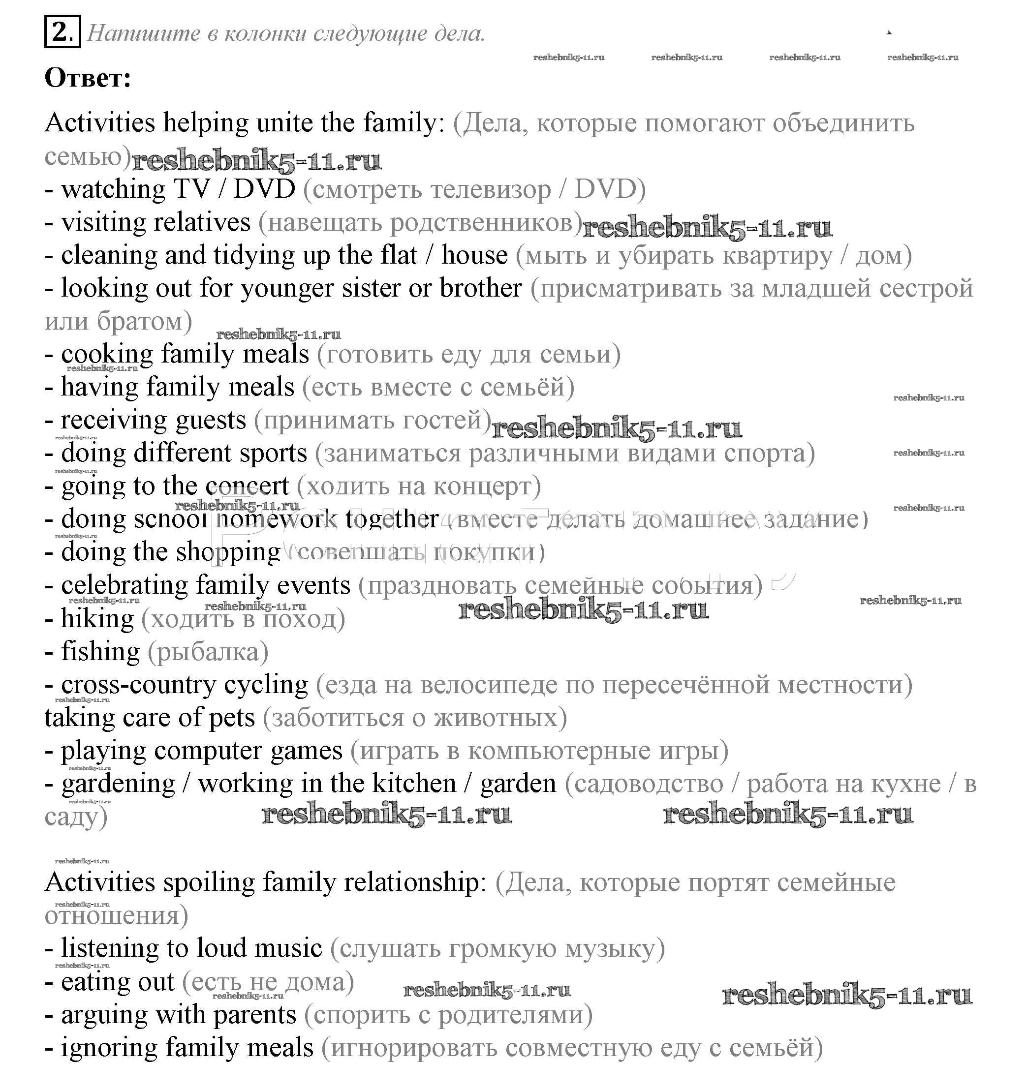 Готовая домашняя работа с ответами по Английскому языку за 10 класс Биболетова, Бабушис, Снежко Рабочая тетрадь Enjoy English Аст/Астрель 2016 ФГОС - Section 2 2