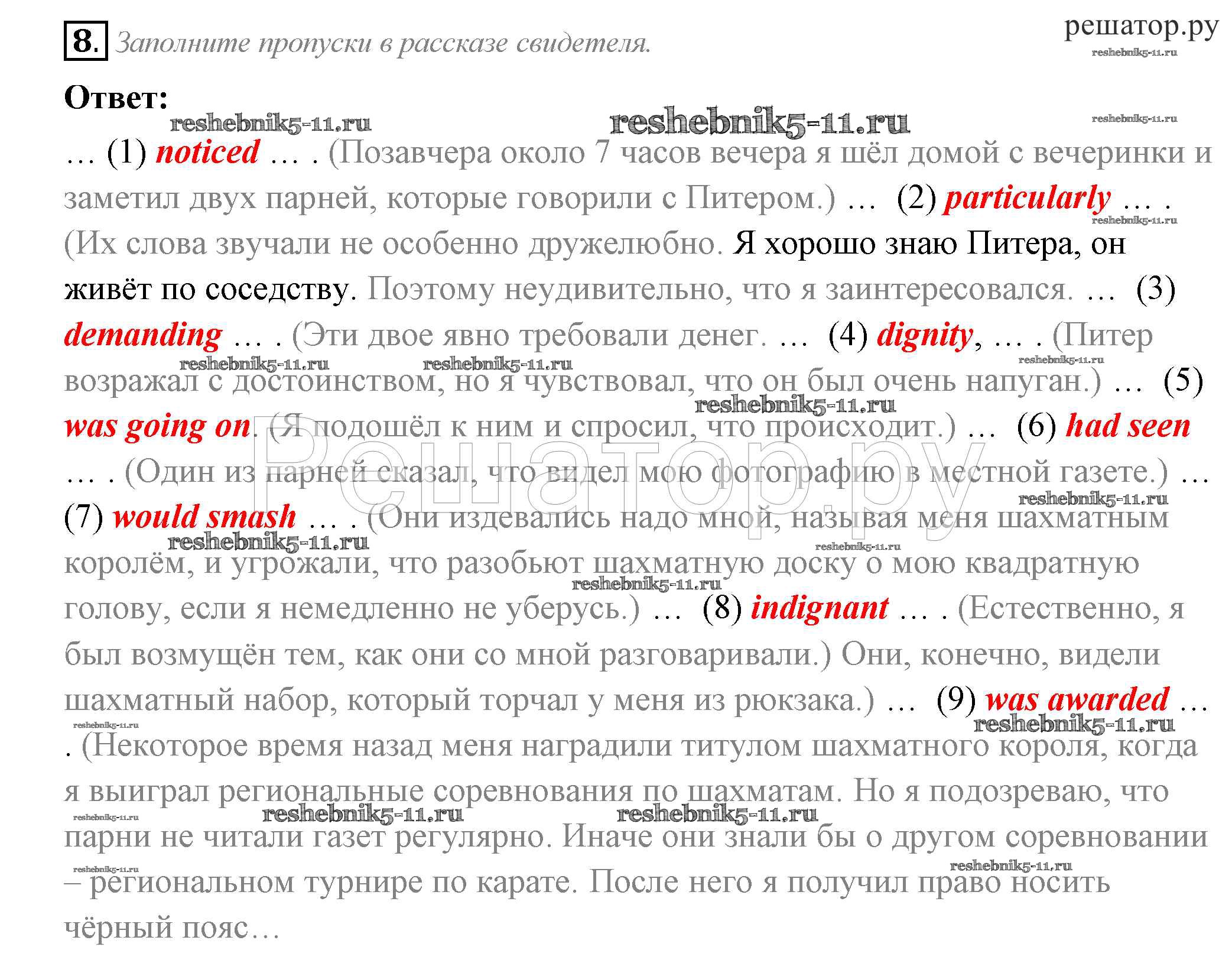 Готовая домашняя работа с ответами по Английскому языку за 10 класс Биболетова, Бабушис, Снежко Рабочая тетрадь Enjoy English Аст/Астрель 2016 ФГОС - Section 3 8
