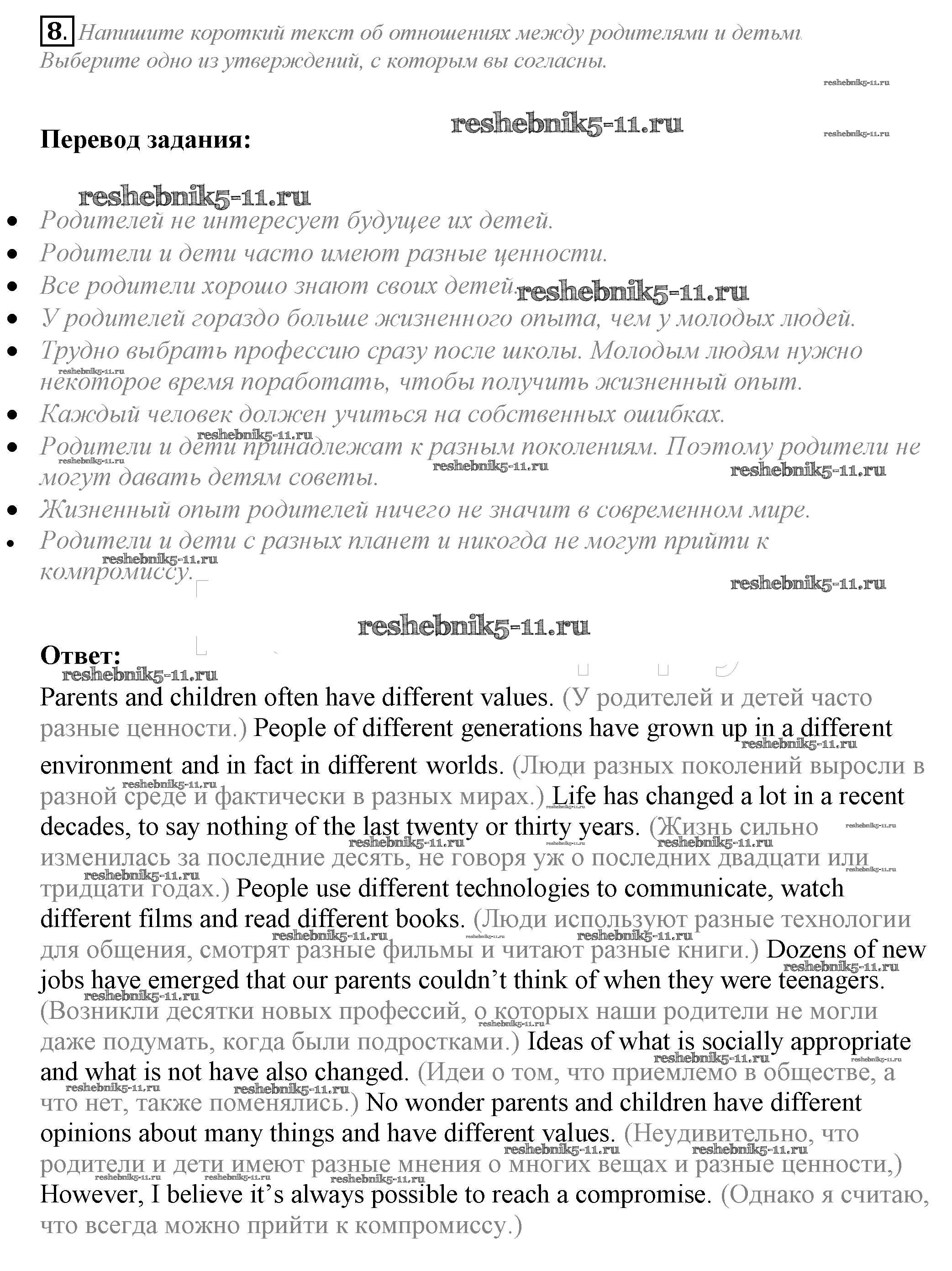 Готовая домашняя работа с ответами по Английскому языку за 10 класс Биболетова, Бабушис, Снежко Рабочая тетрадь Enjoy English Аст/Астрель 2016 ФГОС - Section 4 8