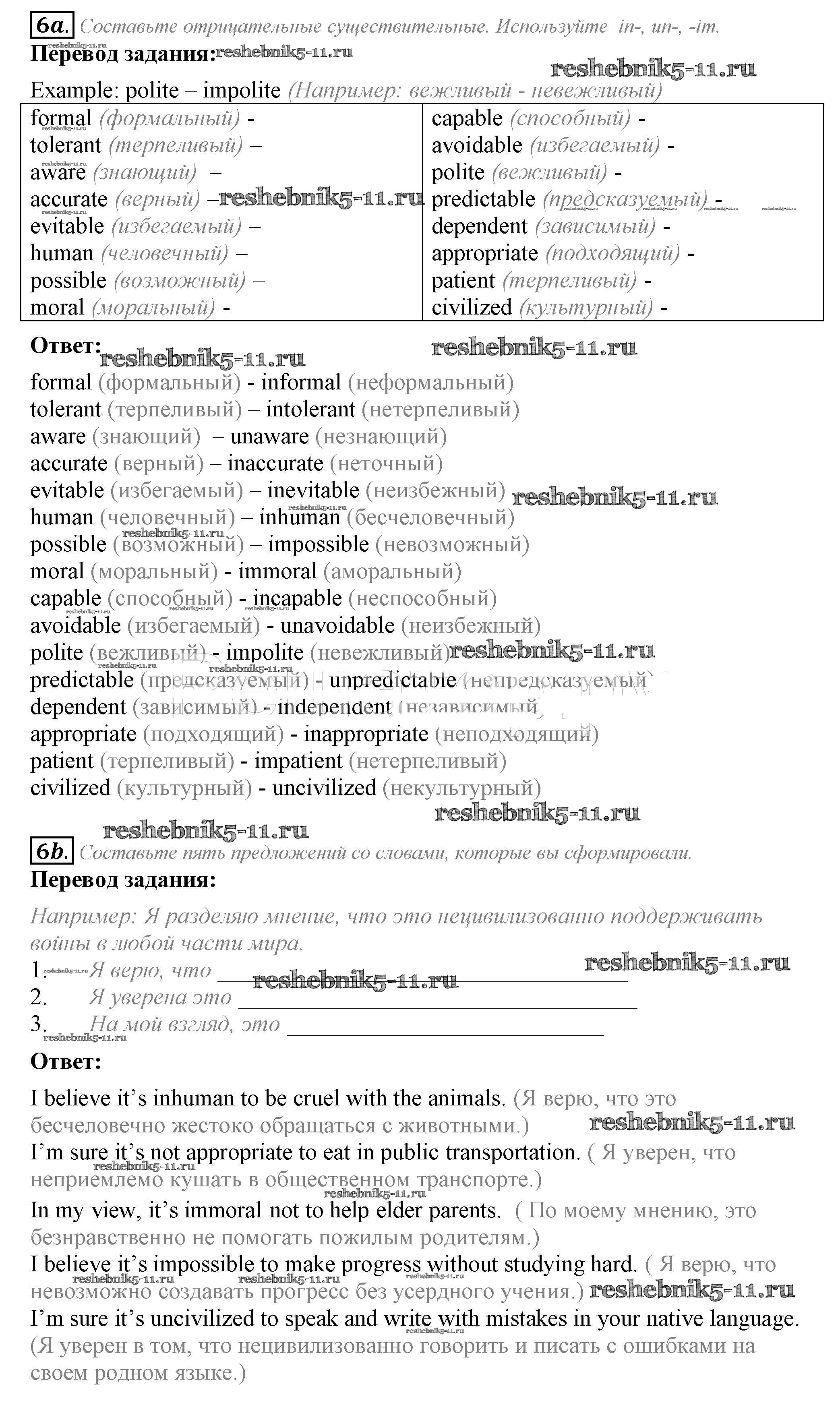 Готовая домашняя работа с ответами по Английскому языку за 10 класс Биболетова, Бабушис, Снежко Рабочая тетрадь Enjoy English Аст/Астрель 2016 ФГОС - Section 4 6