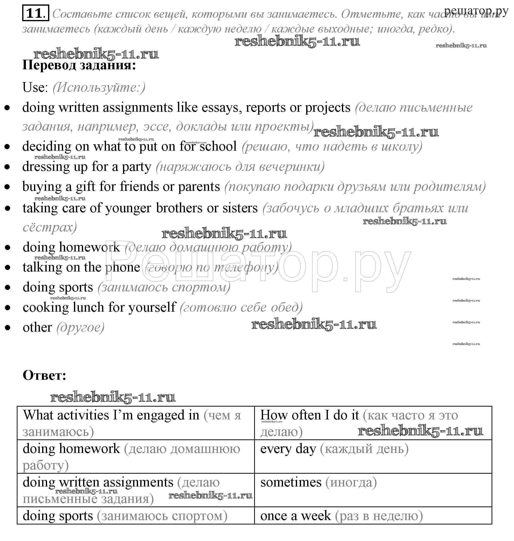Готовая домашняя работа с ответами по Английскому языку за 10 класс Биболетова, Бабушис, Снежко Рабочая тетрадь Enjoy English Аст/Астрель 2016 ФГОС - Section 5 11