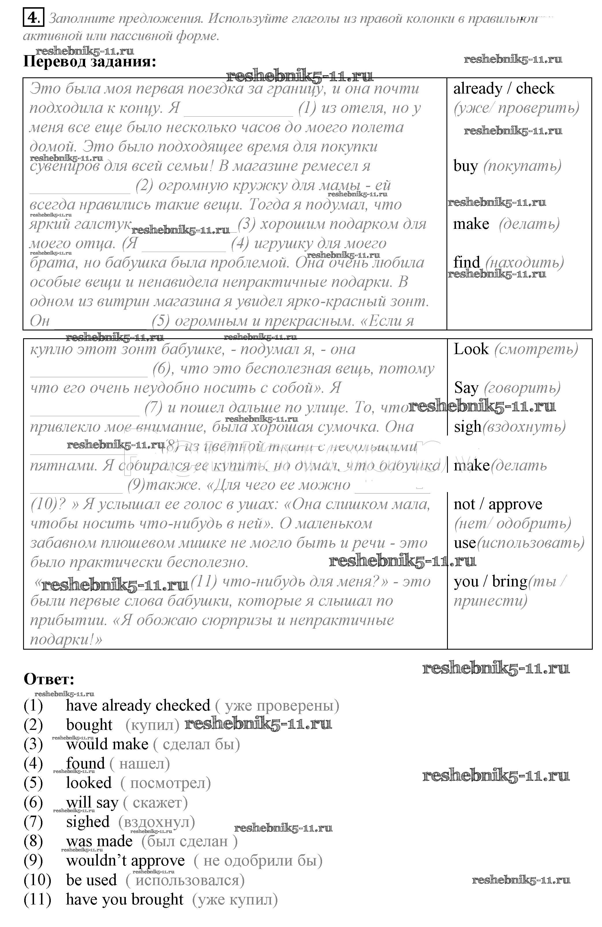 Готовая домашняя работа с ответами по Английскому языку за 10 класс Биболетова, Бабушис, Снежко Рабочая тетрадь Enjoy English Аст/Астрель 2016 ФГОС - Extensive Grammar 4