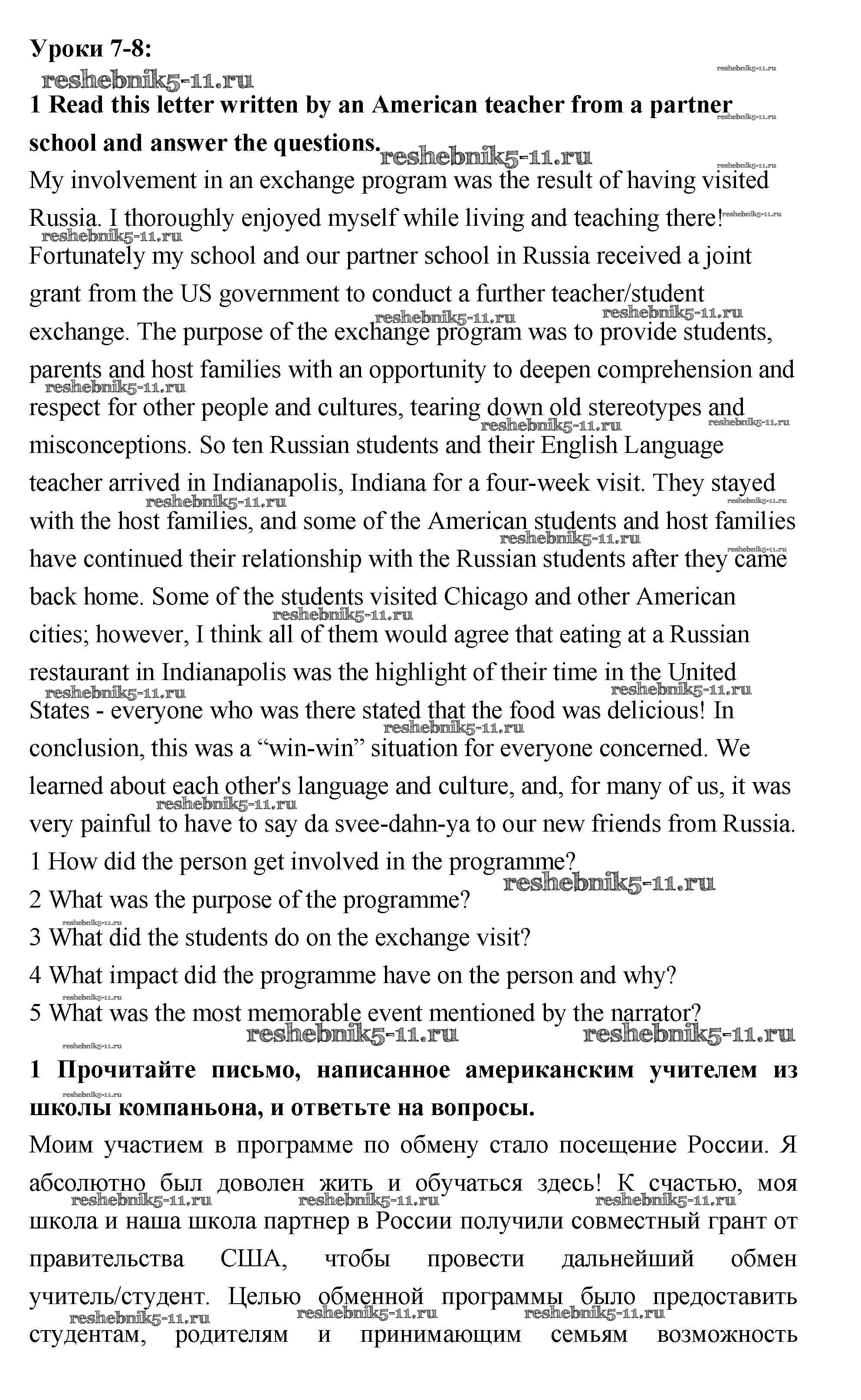 Готовая домашняя работа с ответами по Английскому языку за 10 класс Гроза, Дворецкая, Казырбаева, Клименко Рабочая тетрадь New Millennium Титул 2013 ФГОС - Уроки 7-8 1