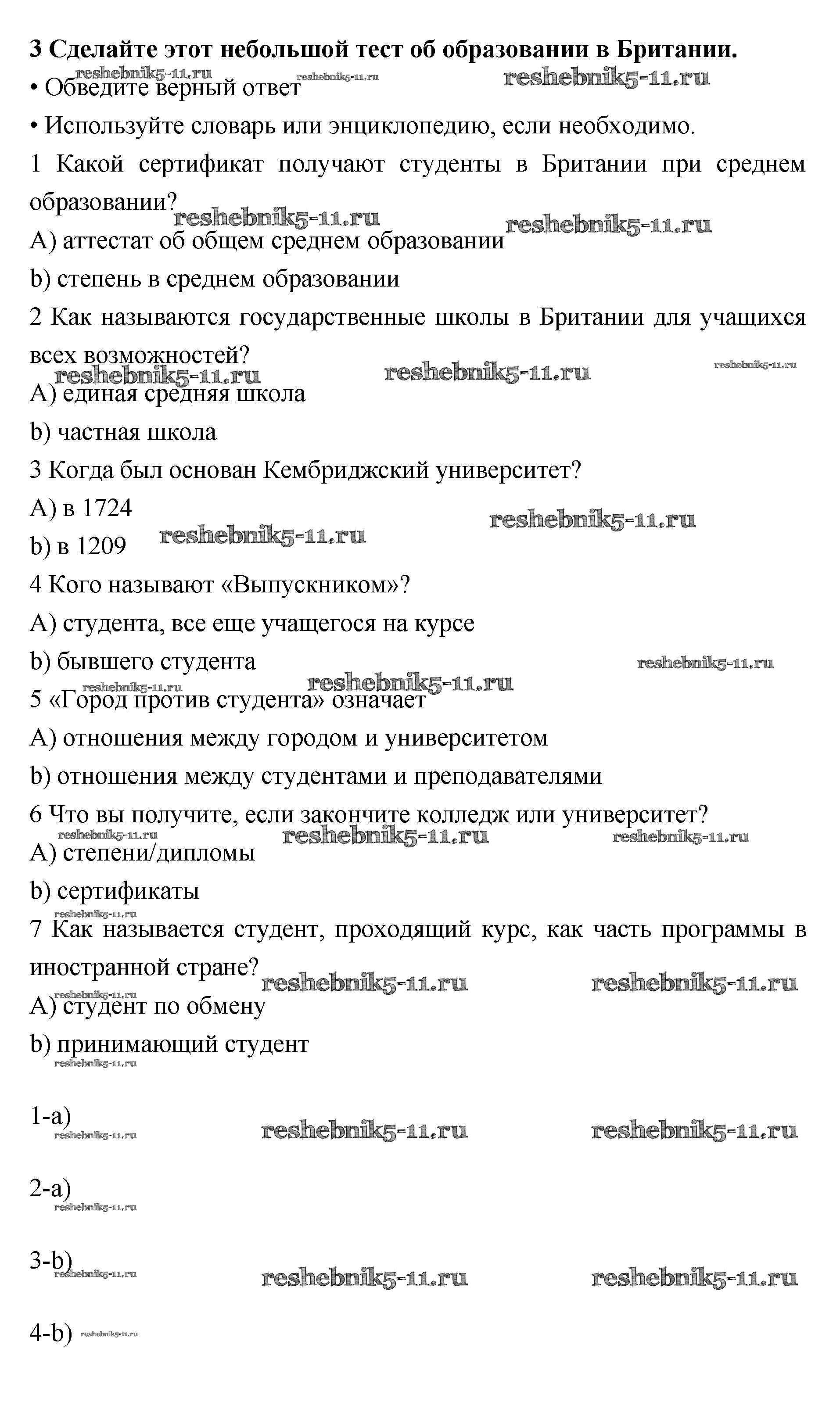 Готовая домашняя работа с ответами по Английскому языку за 10 класс Гроза, Дворецкая, Казырбаева, Клименко Рабочая тетрадь New Millennium Титул 2013 ФГОС - Уроки 7-8 3