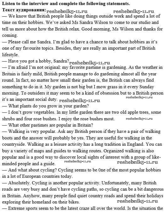 Готовая домашняя работа с ответами по Английскому языку за 10 класс Афанасьева, Михеева, Баранова Рабочая тетрадь Rainbow Дрофа 2016 ФГОС - Unit 1. In Harmony with Yourself 1