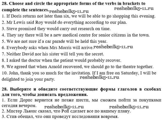 Готовая домашняя работа с ответами по Английскому языку за 10 класс Афанасьева, Михеева, Баранова Рабочая тетрадь Rainbow Дрофа 2016 ФГОС - Unit 1. In Harmony with Yourself 28
