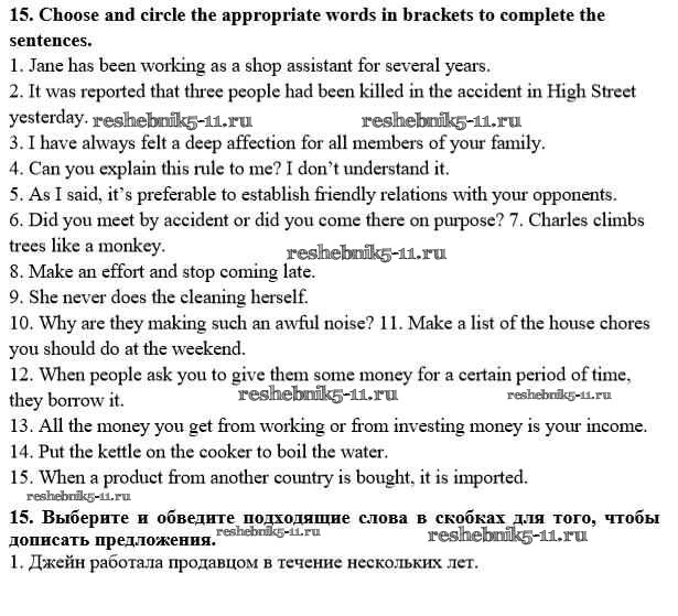 Готовая домашняя работа с ответами по Английскому языку за 10 класс Афанасьева, Михеева, Баранова Рабочая тетрадь Rainbow Дрофа 2016 ФГОС - Unit 2. In Harmony with Others 15