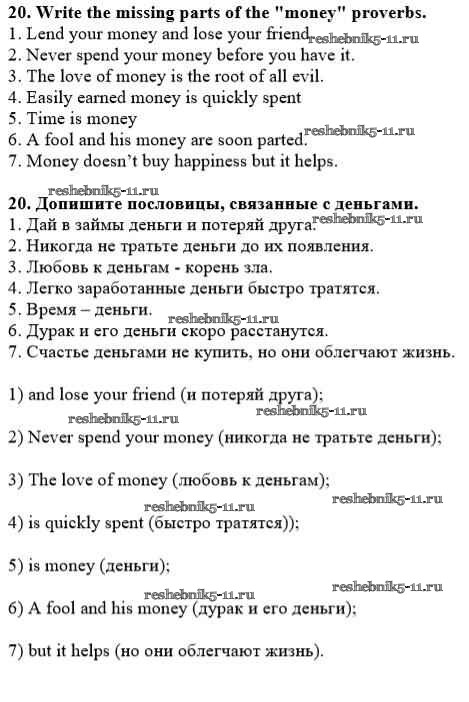 Готовая домашняя работа с ответами по Английскому языку за 10 класс Афанасьева, Михеева, Баранова Рабочая тетрадь Rainbow Дрофа 2016 ФГОС - Unit 2. In Harmony with Others 20