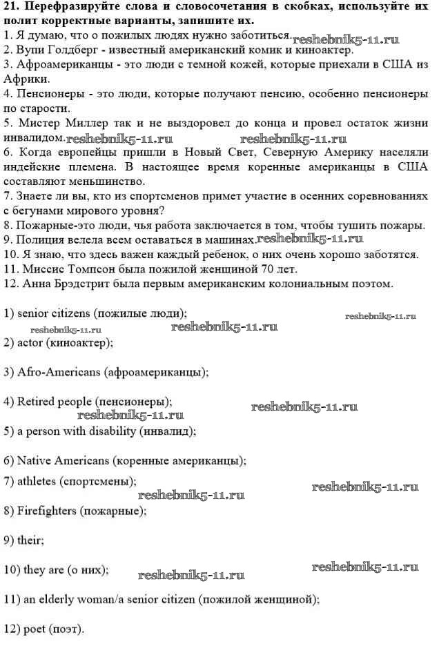 Готовая домашняя работа с ответами по Английскому языку за 10 класс Афанасьева, Михеева, Баранова Рабочая тетрадь Rainbow Дрофа 2016 ФГОС - Unit 2. In Harmony with Others 21