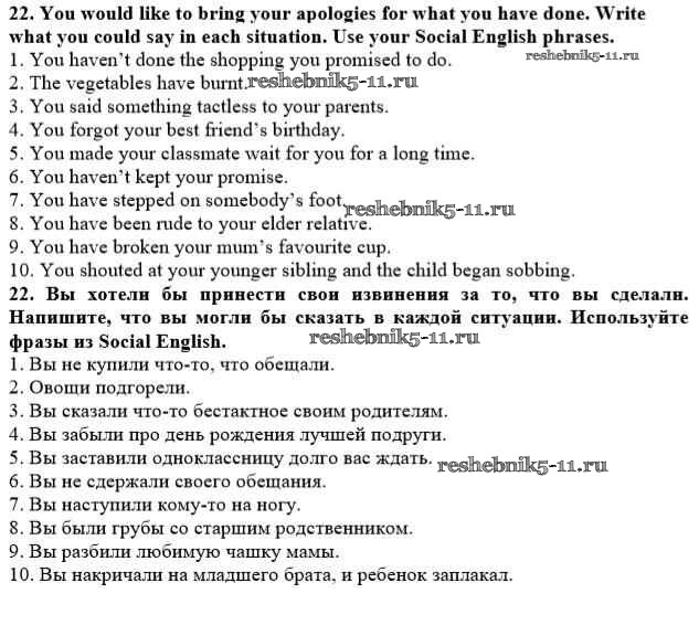 Готовая домашняя работа с ответами по Английскому языку за 10 класс Афанасьева, Михеева, Баранова Рабочая тетрадь Rainbow Дрофа 2016 ФГОС - Unit 2. In Harmony with Others 22