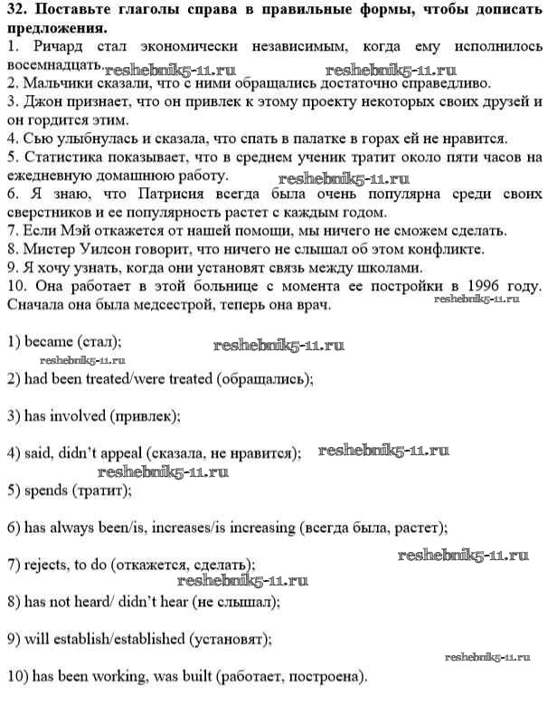 Готовая домашняя работа с ответами по Английскому языку за 10 класс Афанасьева, Михеева, Баранова Рабочая тетрадь Rainbow Дрофа 2016 ФГОС - Unit 2. In Harmony with Others 32