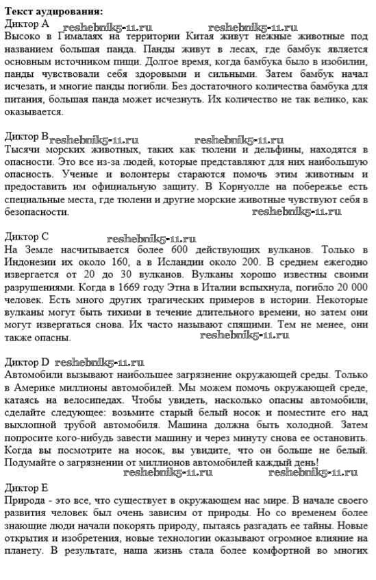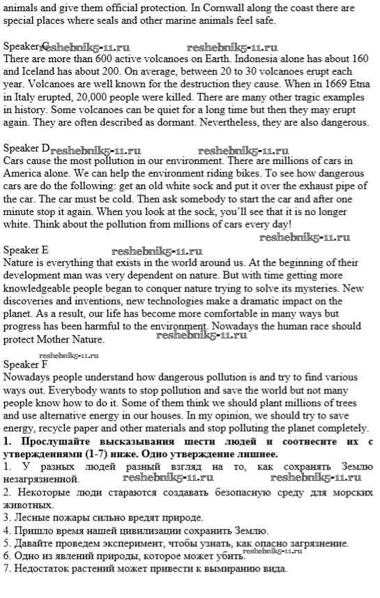 Готовая домашняя работа с ответами по Английскому языку за 10 класс Афанасьева, Михеева, Баранова Рабочая тетрадь Rainbow Дрофа 2016 ФГОС - Unit 3. In Harmony with Nature 1