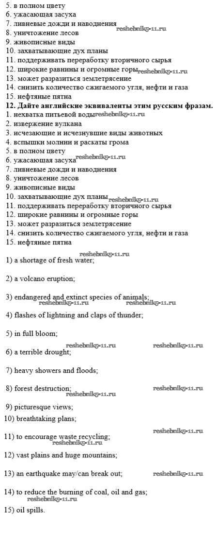 Готовая домашняя работа с ответами по Английскому языку за 10 класс Афанасьева, Михеева, Баранова Рабочая тетрадь Rainbow Дрофа 2016 ФГОС - Unit 3. In Harmony with Nature 12