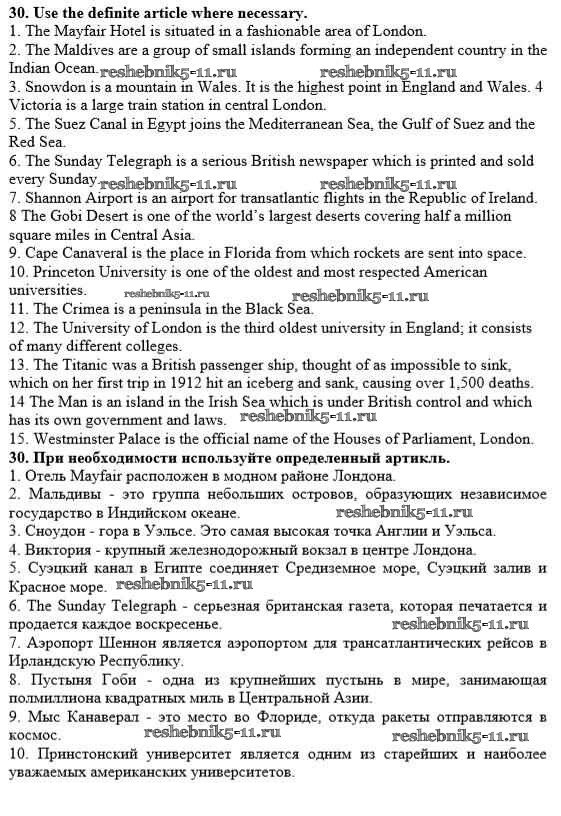 Готовая домашняя работа с ответами по Английскому языку за 10 класс Афанасьева, Михеева, Баранова Рабочая тетрадь Rainbow Дрофа 2016 ФГОС - Unit 3. In Harmony with Nature 30