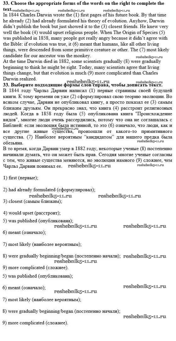 Готовая домашняя работа с ответами по Английскому языку за 10 класс Афанасьева, Михеева, Баранова Рабочая тетрадь Rainbow Дрофа 2016 ФГОС - Unit 3. In Harmony with Nature 33