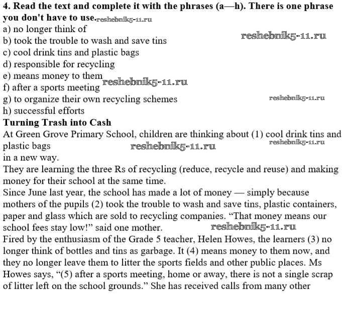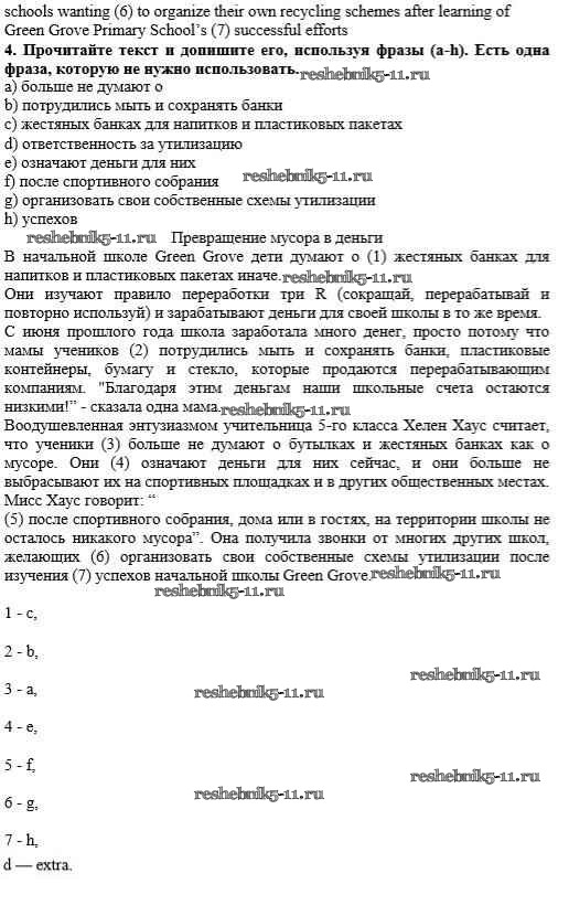 Готовая домашняя работа с ответами по Английскому языку за 10 класс Афанасьева, Михеева, Баранова Рабочая тетрадь Rainbow Дрофа 2016 ФГОС - Unit 3. In Harmony with Nature 4