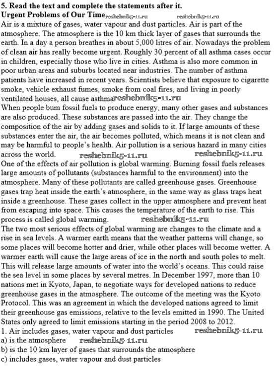 Готовая домашняя работа с ответами по Английскому языку за 10 класс Афанасьева, Михеева, Баранова Рабочая тетрадь Rainbow Дрофа 2016 ФГОС - Unit 3. In Harmony with Nature 5