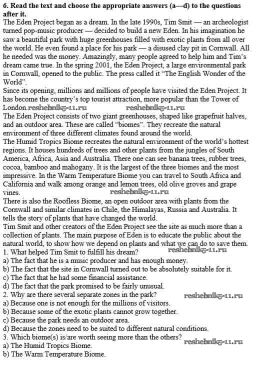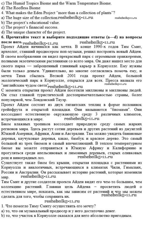 Готовая домашняя работа с ответами по Английскому языку за 10 класс Афанасьева, Михеева, Баранова Рабочая тетрадь Rainbow Дрофа 2016 ФГОС - Unit 3. In Harmony with Nature 6
