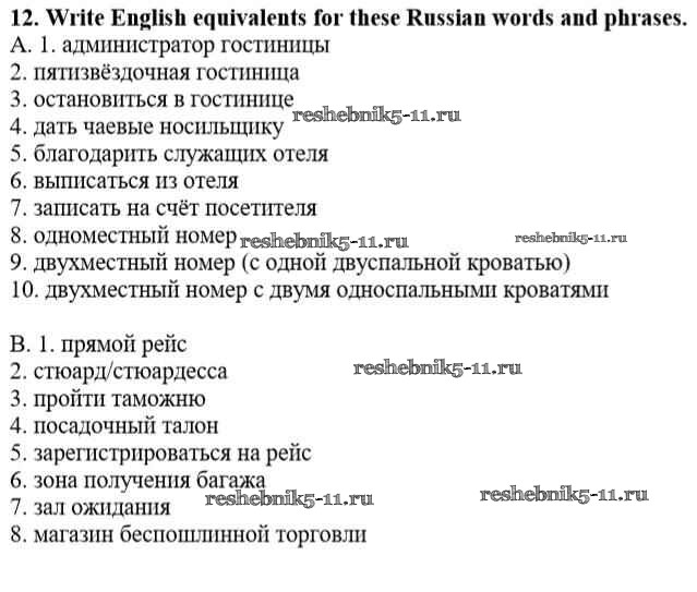 Готовая домашняя работа с ответами по Английскому языку за 10 класс Афанасьева, Михеева, Баранова Рабочая тетрадь Rainbow Дрофа 2016 ФГОС - Unit 4. In Harmony with the World 12