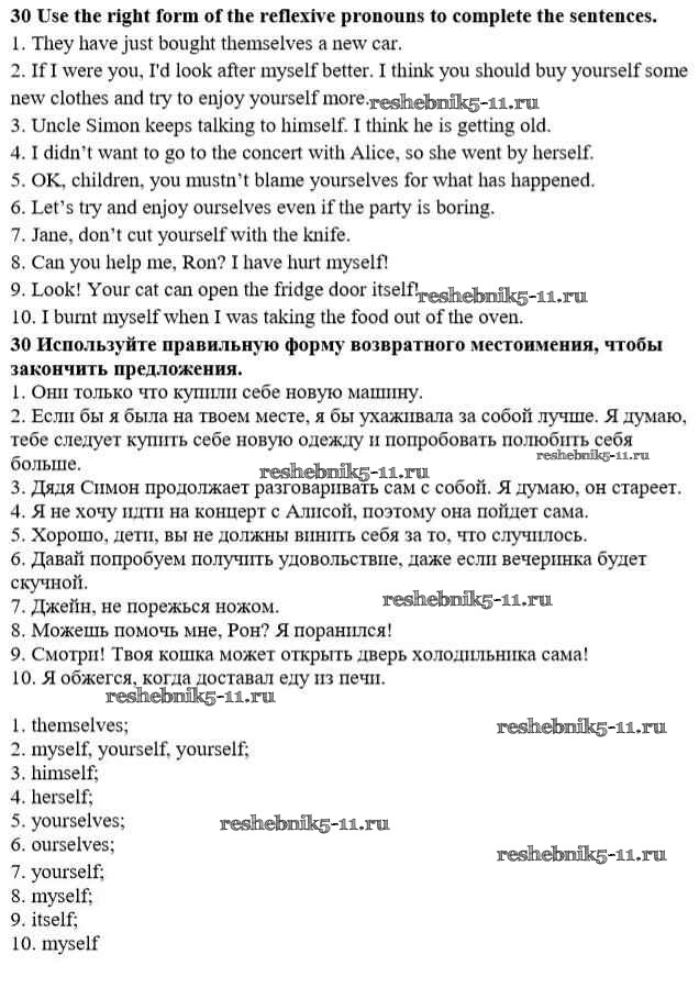 Готовая домашняя работа с ответами по Английскому языку за 10 класс Афанасьева, Михеева Учебник Углубленный уровень Просвещение 2014 ФГОС - Unit 1. Man the Creator 30