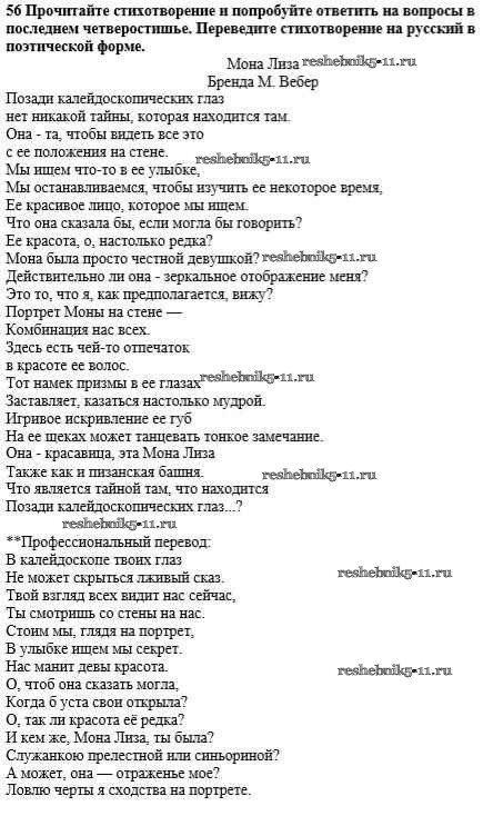 Готовая домашняя работа с ответами по Английскому языку за 10 класс Афанасьева, Михеева Учебник Углубленный уровень Просвещение 2014 ФГОС - Unit 1. Man the Creator 56