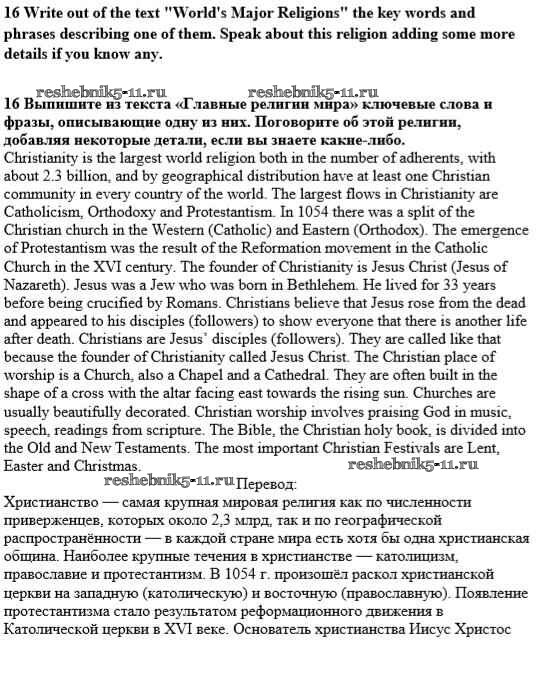 Готовая домашняя работа с ответами по Английскому языку за 10 класс Афанасьева, Михеева Учебник Углубленный уровень Просвещение 2014 ФГОС - Unit 2. Man the Beliver 16